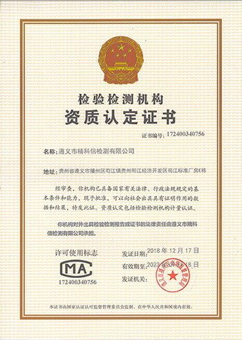 遵義市精科信檢測有限公司是一家主要從事食品、食用農產品、藥品、化妝品、環境、公共場所衛生、礦石煤炭等檢驗檢測、技術咨詢和培訓服務為一體的專業第三方檢驗檢測機構